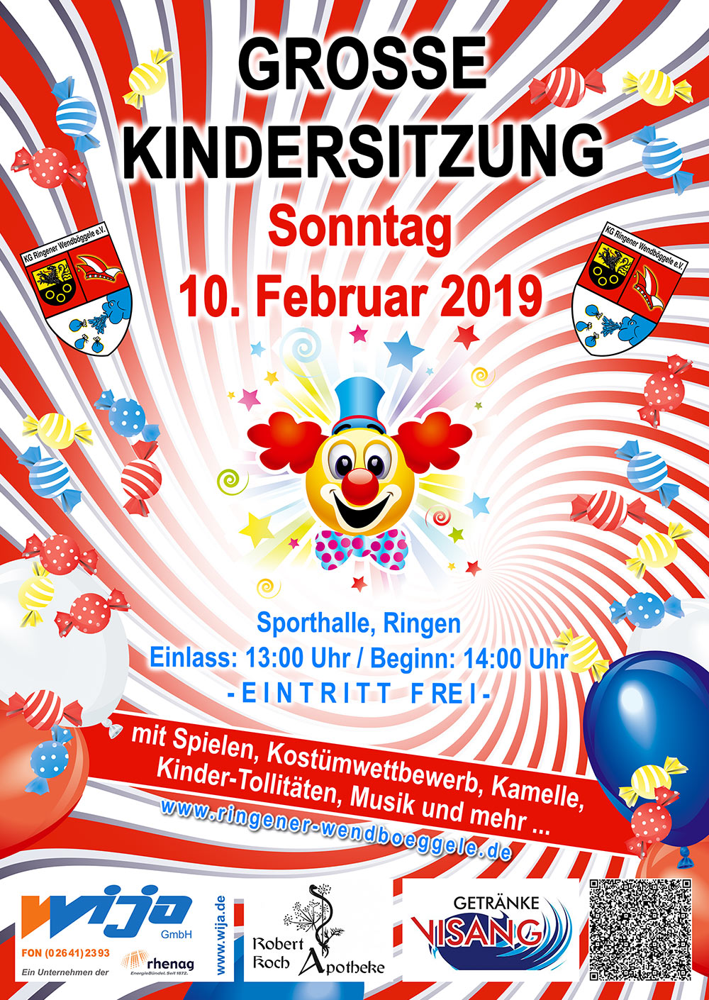 Wir laden alle Kinder und Jugendlichen mit Eltern, Großeltern und allen jung-gebliebenen Närrinnen und Narren zu unserer Großen Kindersitzung mit Spielen, Tänzen, Tollitäten, Kamelle und vielem mehr ein.