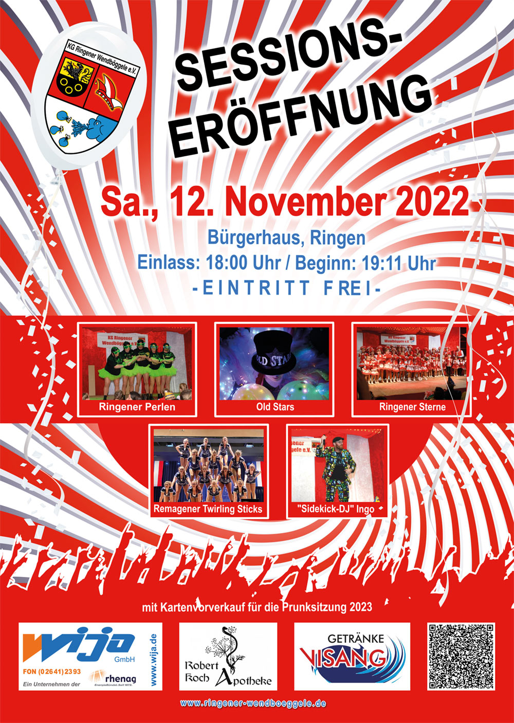 Wir freuen uns sehr darauf, endlich nach einer gefühlten Ewigkeit wieder mit Euch allen zu feiern und die Session 2022/23 offiziell einzuläuten. Nach über zwei Jahren wird es dann wieder heißen "Ringen - Beller - Bölingen - Alaaf"! Wir starten nach dem 11.11. am: